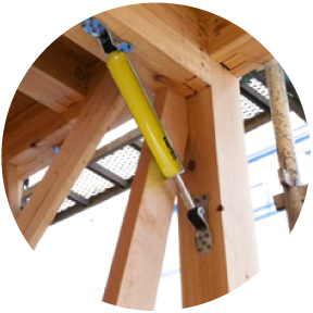 自動車などのショックアブソーバーの技術を生かした木造住宅用制震装置の販売を行っています。このシステムによって、地震の初期の揺れから繰り返し何度も起こる余震まで、建物に伝わる地震エネルギーを約48%吸収し、建物への負担を軽減することが可能です。木造軸組工法から2×4工法まで、あらゆる木造工法に設置できます。