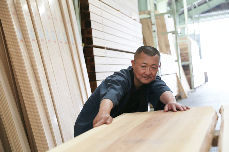 見抜くべきポイントというのは、色であったり年輪の混み具合、節や陽疾(あて)の有無がその一例です。こうしたことを見極める目は一朝一夕に備えられるものではありません。「見て、さわって、かついで、覚えろ」という当社の社是が、結局、いちばんの近道。日々の鍛錬が、「目利き」への長い長い道程なのです。